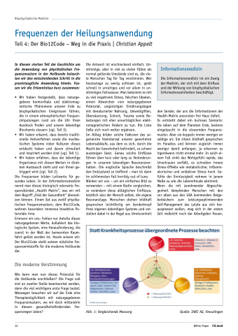 Die Frequenzen bilden Leitwerte für ge- sundes Leben. In der Informationsmedizin nennt man dieses biologisch relevante Fre- quenzbündel „Health Matrix“, was wir mit dem Begriff „Feld der Gesundheit“ überset- zen können. Einem Set aus zwölf physika- lischen Frequenzmustern, dem Bio12Code, wohnen besonders immense bioaktive Po- tenziale inne.