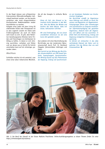 Der Bio12Code schafft im Organismus neue Ordnung und verhilft so durch Re- sonanz und Regulation zur Regeneration. Schwingungen führen über Schwebungen und Summationen zur frequenz-modulier- ten Informationsprägung des gesamten Organismus. Dadurch kann der Organis- mus sich öffnen und neu ausrichten. Er findet Halt und Orientierung. Erdung und Kopplung ermöglichen Erholung und Ent- spannung.